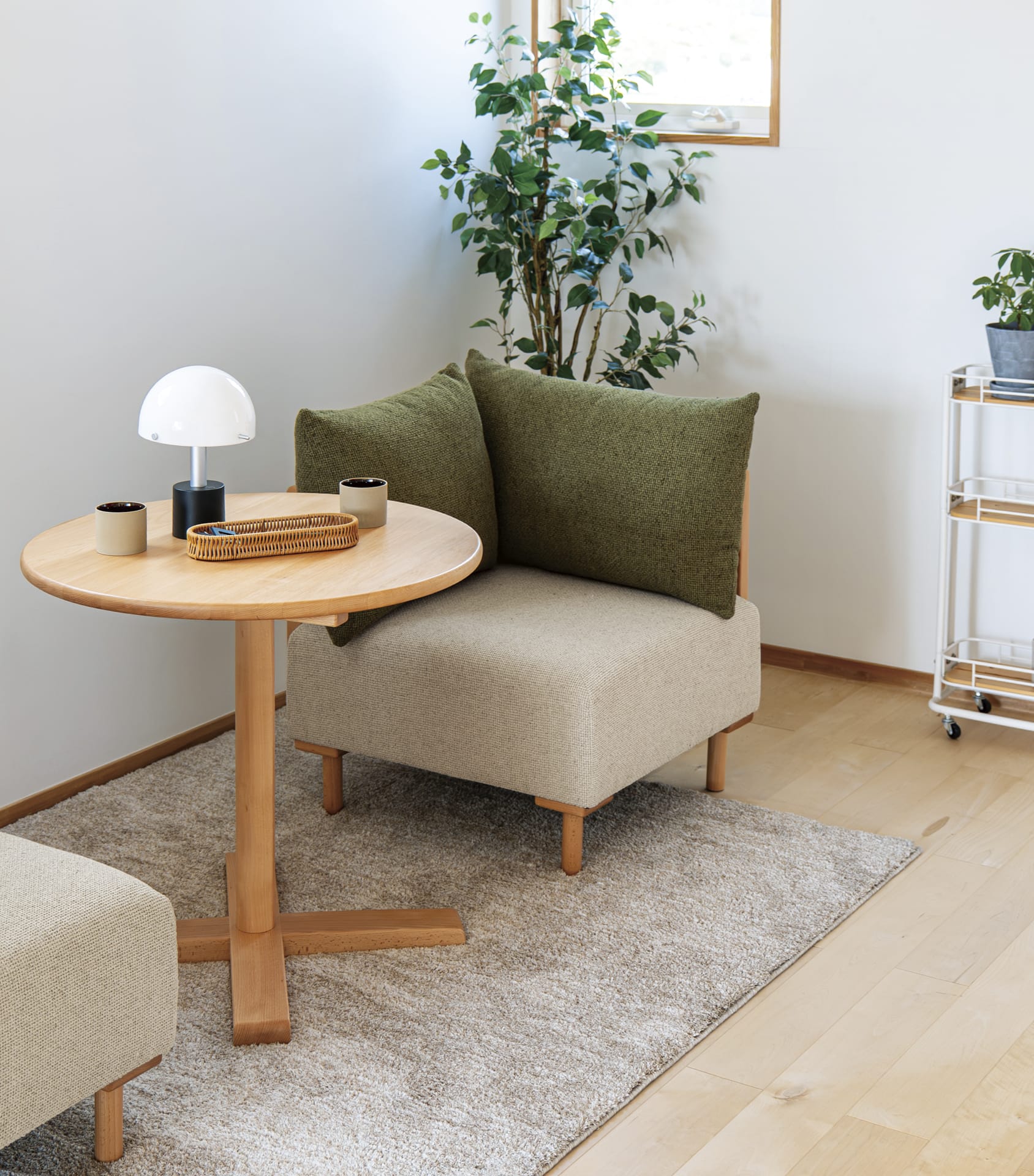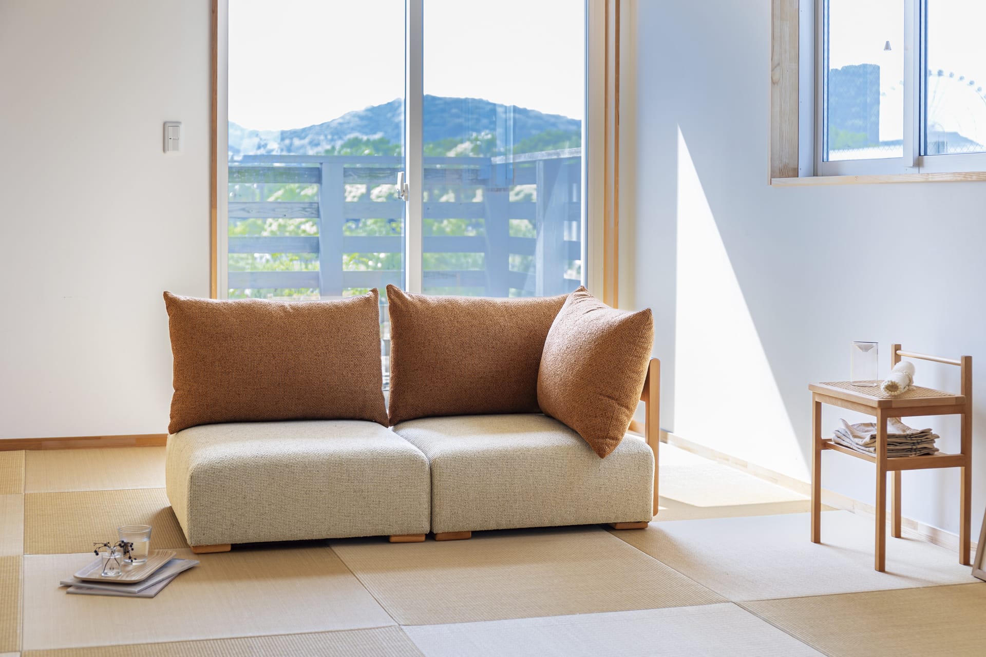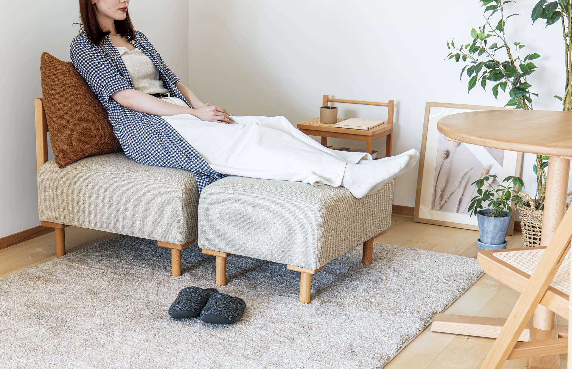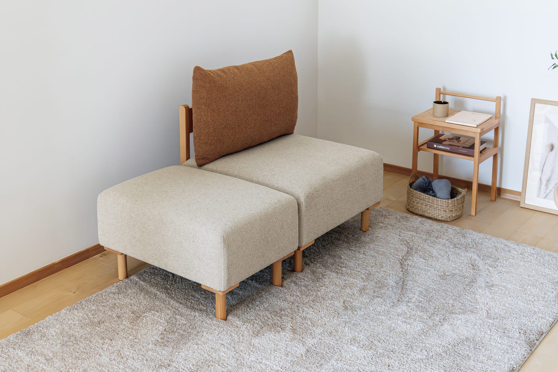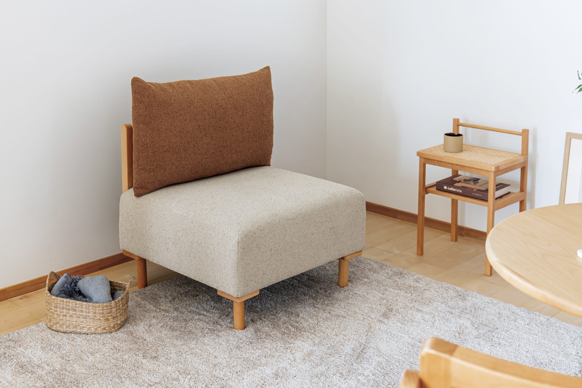 座るだけでなく、飾り棚やサイドテーブルとしてもお使いいただけます。