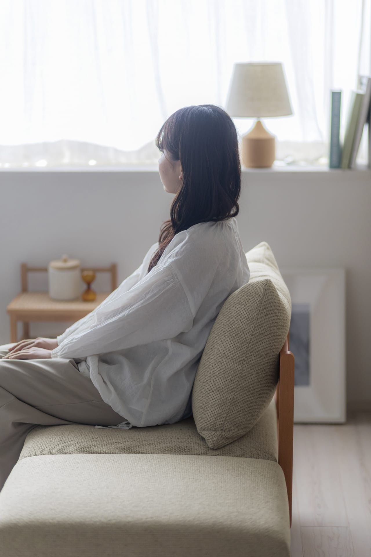 自然な丸みを描いたデザインが特徴的で、淡く、儚げでアンニュイな雰囲気のある「e n n / アン」アームソファ。