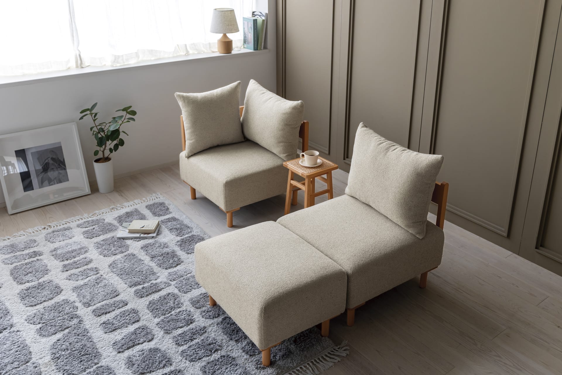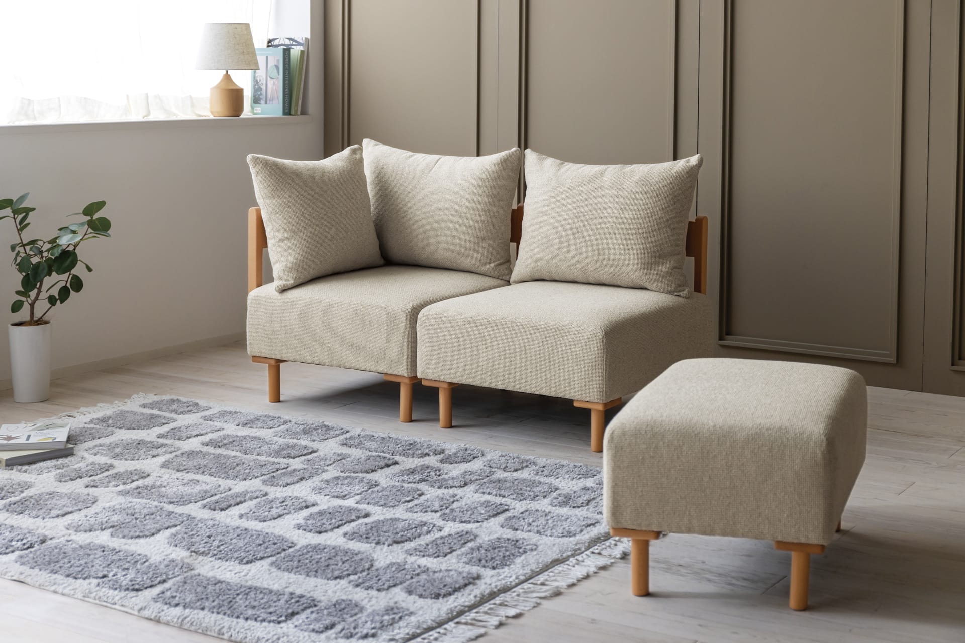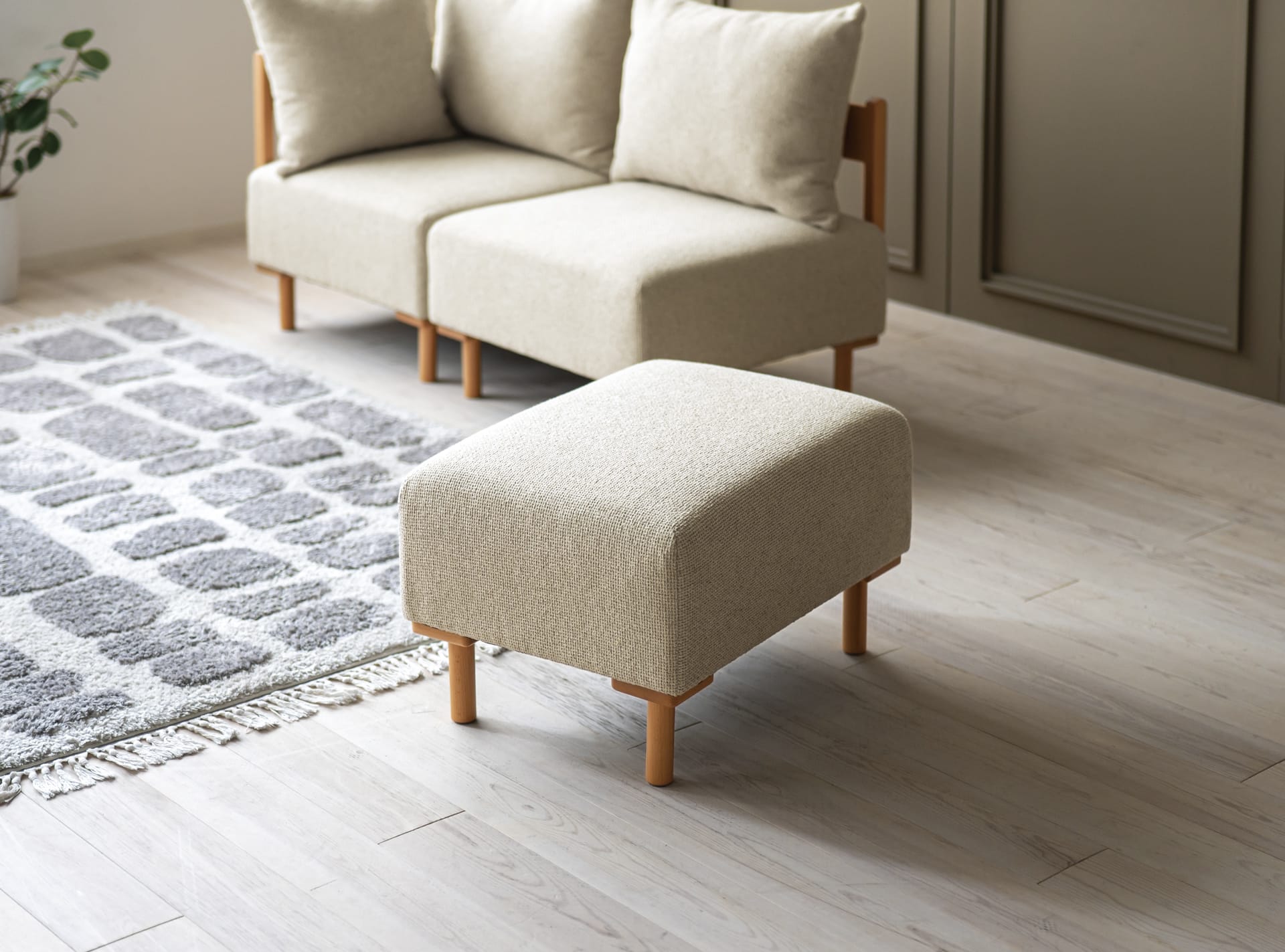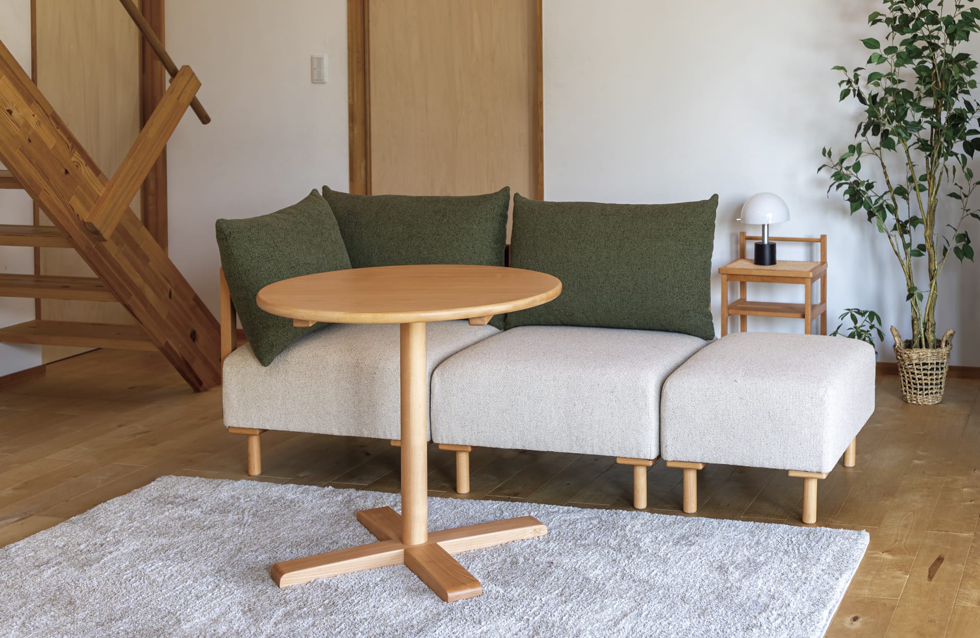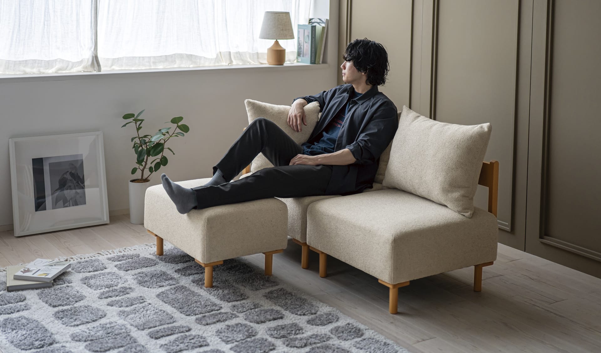 それぞれの暮らしに合わせて、自由な組み合わせがやレイアウトが可能なユニットソファ。